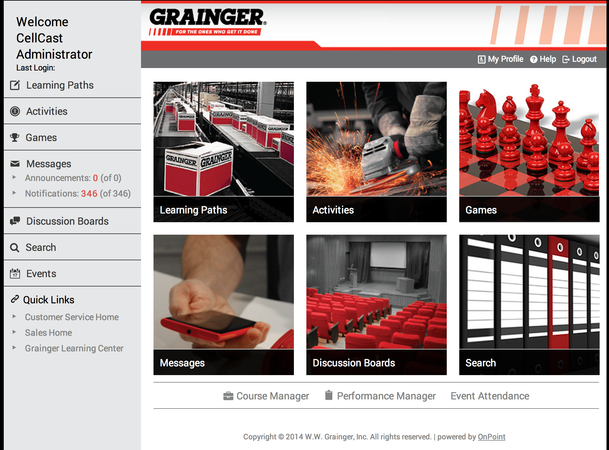 Grainger is a Fortune 500 industrial supply company established in 1927 to provide an efficient solution for fulfilling business customers’ needs through direct sales and catalog services. Grainger began working with OnPoint in 2013 in an effort to rethink their onboarding process for outbound sales associates using mobile technology by eliminating printed training materials and providing improved ways to engage these new hires with the company, their managers/mentors and their peers. Today, Grainger is one of OnPoint’s premiere use cases for online and mobile delivered training programs applying scores of available features in innovative ways to help them save time, money, and improve business results.