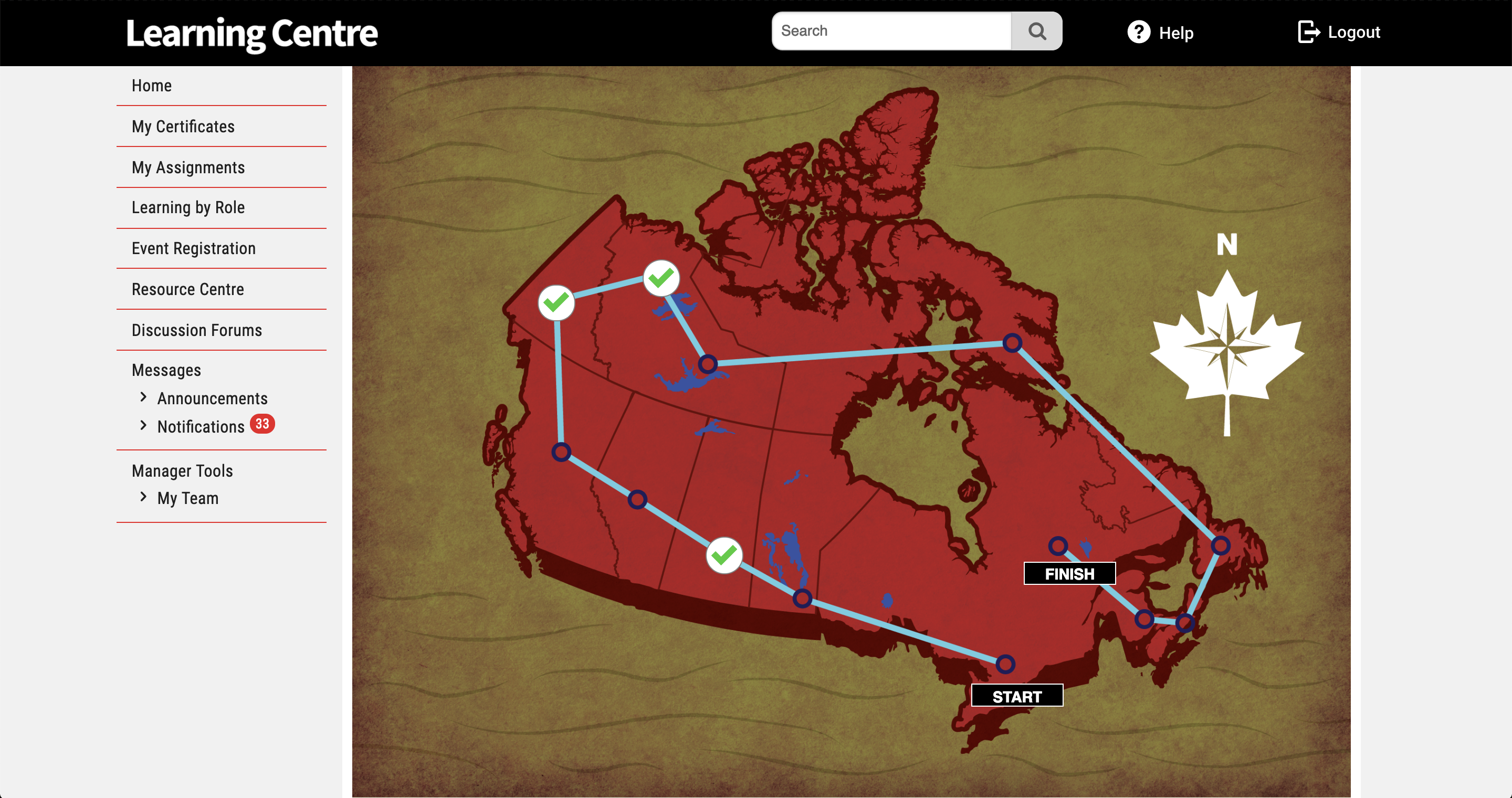 A selection of integrated gamification features available in OnPoint’s online & mobile platforms includes: