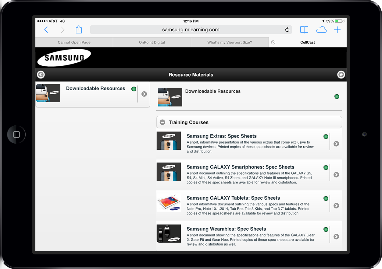 Most enterprise customers opt to use CellCast native apps to help them package, deliver and control the learning and business content/information they seek to distribute to their mobile audience. But in the scenario where barriers exist that make downloading and installing an app on a user’s device challenging, OnPoint customers can elect to deliver their training and informational content to remote workers via a mobile device’s native web browser using fully integrated CellCast Mobile Web App functionality that’s built into the CellCast Solution platform. The various limitations of the mobile web app approach – ranging from lack of offline playback, basic security options, and limited tracking capabilities – can be largely overcome in select use cases. The CellCast Mobile Web App is best applied when the target audience is deemed unwilling or is restricted from installing a native app, has reliable access to wireless data services, and only has an occasional need to participate in the mobile learning experience.